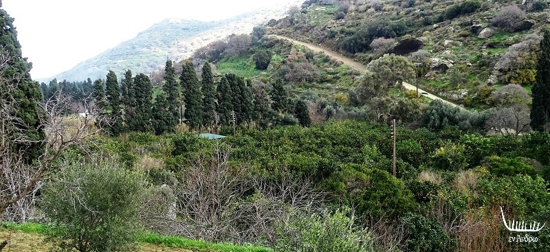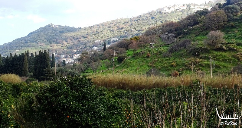 Το ποτάμι ελίσσεται ανάμεσα στην κοιλάδα. Σε τίποτα δεν θα έλεγε κανείς πως το τοπίο αυτό είναι στις Κυκλάδες. Ίσως κάπου αλλού, σε κάποιο άλλο τόπο. Κι όμως είναι η Άνδρος που με τα νερά της εντυπωσιάζει...