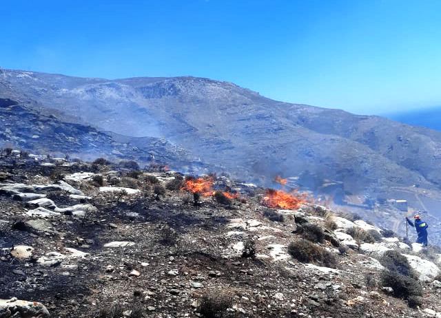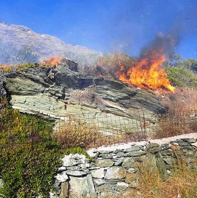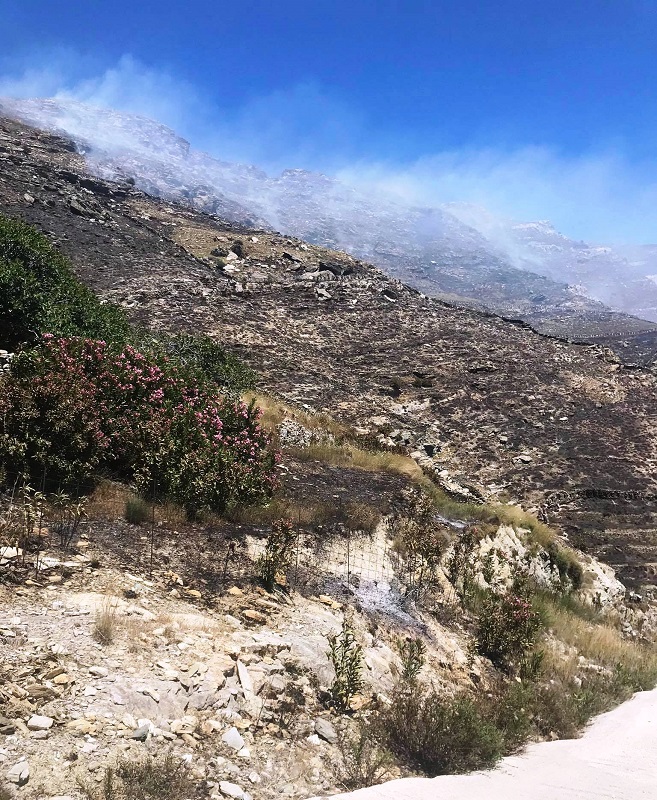 Οι πρώτες εκτιμήσεις λόγω του ερημικού της περιοχής και του απόκρημνου του εδάφους λένε για εμπρησμό. Δημοσιεύουμε 4 φωτογραφίες που έστειλε αναγνώστης μας από τον τόπο της φωτιάς.
