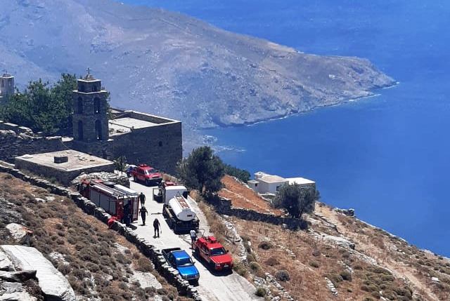 Η πυρκαγιά εξαπλώθηκε σταδιακά λόγω των ισχυρών ανέμων και ανατολικά και βόρεια του μοναστηριού κι έχει καεί πολύ μεγάλη έκταση περιμετρικά από την Μονή. Επιτόπου είναι και η Πολιτική Προστασία του Δήμου Άνδρου, καθώς και ο αντιδήμαρχος Κορθίου Δημήτρης Τηνιακός. Γίνονται μεγάλες προσπάθειες από εθελοντές και πυροσβέστες να σβήσουν τις πάρα πολλές εστίες που υπάρχουν πλέον και ανατολικά και βόρεια.