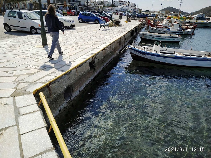 George Mantjoros: Καλό μήνα σε όλους! Σήμερα με καλό καιρό μετά τους ισχυρους βοριάδες, στο λιμάνι του Γαυρίου η στάθμη της θάλασσας έχει πτώση περίπου... ένα ολόκληρο μέτρο από το ανώτατο σημείο της, αυτό που είχε πριν λίγες μέρες με νοτιάδες. Ακούγεται απίστευτο, είναι όμως αληθινό!