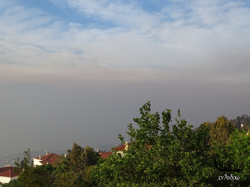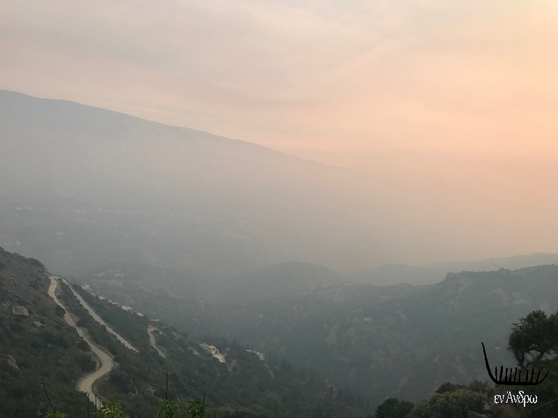 Αυτό που μας καθυσήγαζε ότι δεν καιγόταν η Άνδρος ήταν ότι εκτός από τον καπνό και τη στάχτη υπήρχε και δυνατή μυρωδιά πεύκου.