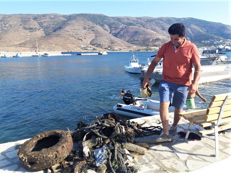 Πρώτη στάση το λιμάνι. Ο βυθός του λιμανιού έκρυβε τις... γνωστές εκπλήξεις! Ρόδες αυτοκινήτου, καλώδια και σχοινιά καϊκιών, κομμάτια από δίχτυα...