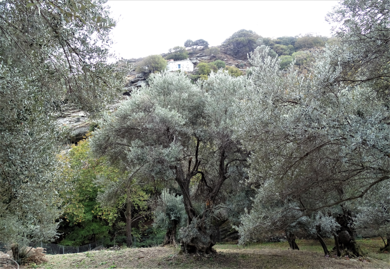 Ο ΕΛΑΙΩΝΑΣ & ΤΑ ΣΚΛΗΘΡΑ: Ο Ελαιώνας του κτήματος απαρτίζεται από δεκάδες ελιές αιώνων. Είναι λίαν εντυπωσιακός. Στα όρια του μεταφέρθηκαν 8.000 δενδρύλλια σκλήθρου για την αποκατάσταση των δασών της Άνδρου. Τα δενδρύλλια εκεί έμειναν μέχρι για να αναπτυχθούν επαρκώς και να εγκλιματιστούν στις συνθήκες του νησιού. Με αυτά θα γίνει αποκατάσταση των δασών σκλήθρου που βρίσκονται στη Βόρη και τα Λεύκα. Οι εργασίες μεταφύτευσης στο κτήμα Αγαδάκη έγιναν υπό την επίβλεψη του Γεωπονικού Πανεπιστημίου Αθηνών και της Καϊρείου Βιβλιοθήκης, σε συνεργασία με την τοπική ομάδα του έργου από τον Δήμο Άνδρου (LIFE Andros Park).