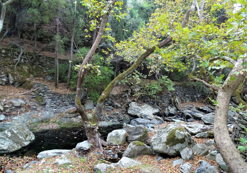 Σκλήθρα και πλατάνια στο ρέμα των Απατουρίων στα όρια του κτήματος Αγαδάκη.
