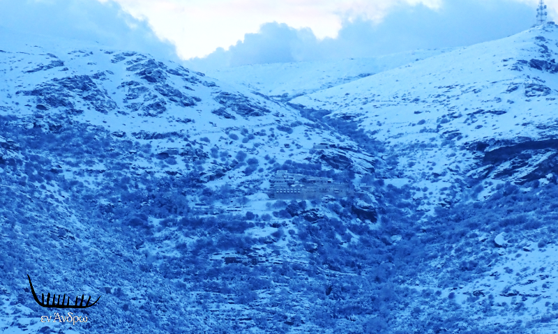 Μονή Παναχράντου στους Γερακώνες. Χαμένη στο χιόνι. Ρεπορτάζ Εν Άνδρω.