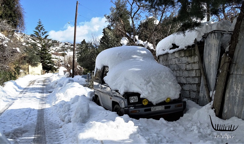 Διατρέξαμε - με την συνδρομή της πολιτικής προστασίας του Δήμου Άνδρου και του δημάρχου - τις δύο παραπάνω διαδρομές κατά την σημερινή 4η μέρα του χιονιά στην Άνδρο. Παρακολουθήσαμε την δράση του δημάρχου, των τεχνιτών, των συνεργατών του και προσπαθήσαμε να μεταφέρουμε εδώ κάτι από τις ευθύνες και το τρέξιμο των ημερών ενός από τα 12 κλιμάκια που είναι στους δρόμους της Άνδρου από το Σάββατο μέχρι σήμερα. Γύρω στις 2 το μεσημέρι μάς άφησαν στο Γαύριο. Ο δήμαρχος και οι συνεργάτες του συνέχισαν μετά προς Βιτάλι και Λειβάδιζα σε μια προσπάθεια να ανοίξουν τους δρόμους για να απεγκλωβίσουν και τα τελευταία μικρά χωριά της περιοχής. Εμείς με την συνδρομή ενός αναγνώστη επιστρέψαμε στην αφετηρία μας...