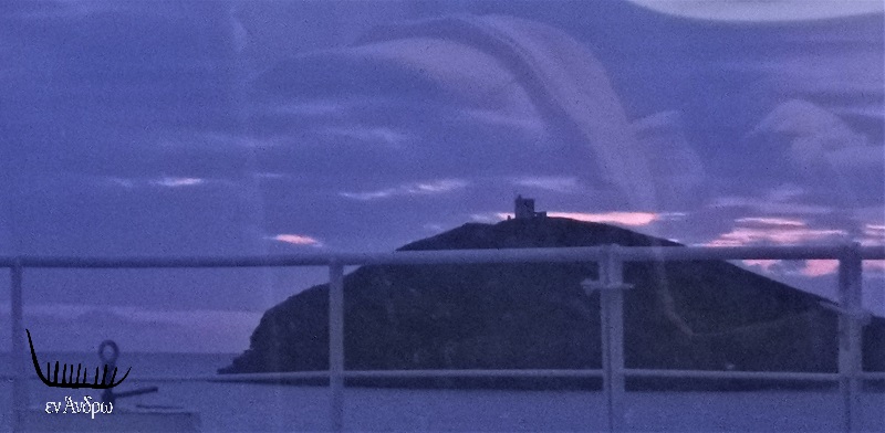 Στο Γαύριο αναχωρεί το ΑΙΚΑΤΕΡΙΝΗ στις  18:00. Από το σαλόνι ο έφηβος Οδυσσέας βγάζει μια τελευταία φωτογραφία του φάρου και του ουρανού μετά το χιόνι. Στο απόλυτο... μωβ!!! Μας την στέλνει χαμογελώντας και λέγοντας μας την φράση του Πάολο Κοέλιο: "μην ξεχνάτε τα όμορφα ηλιοβασιλέματα χρειάζονται συννεφιασμένους ουρανούς..."