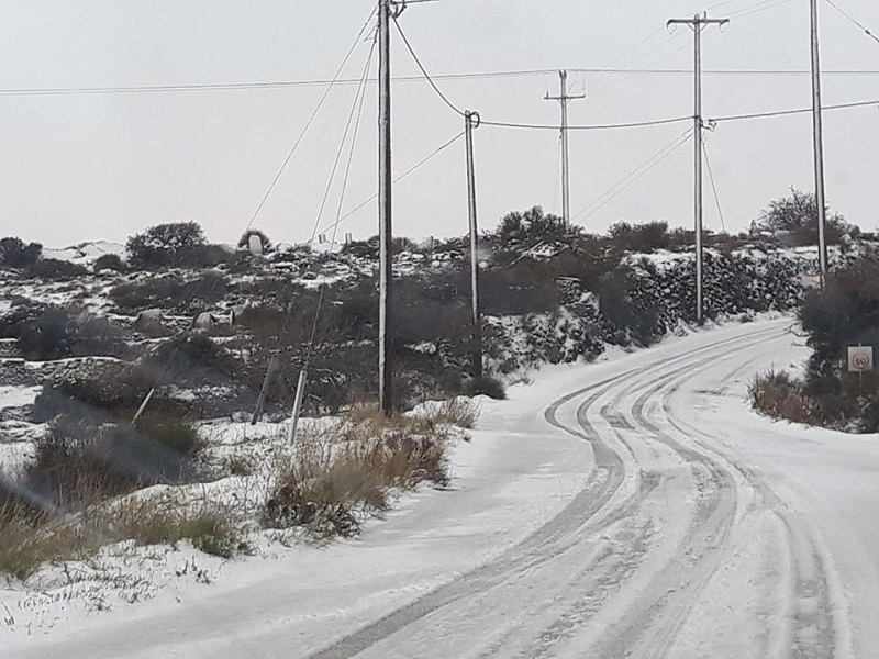 Ο δρόμος στην Σταυροπέδα. Χιονισμένος και κρουσταλιασμένος από την πολύ μεγάλη παγωνιά που κυμαίνεται από 2 μέχρι 5 βαθμούς. Οι φωτογραφίες του κλιμακίου της Πολιτικής Προστασίας.
