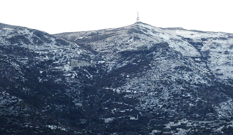 Φυσικά χιόνισε και στην Άρνη. Όχι για να μην έχετε αμφιβολίες ιδού η Κουβάρα (αριστερά) και η συνέχεια της ψηλά πάνω από την Άρνη...