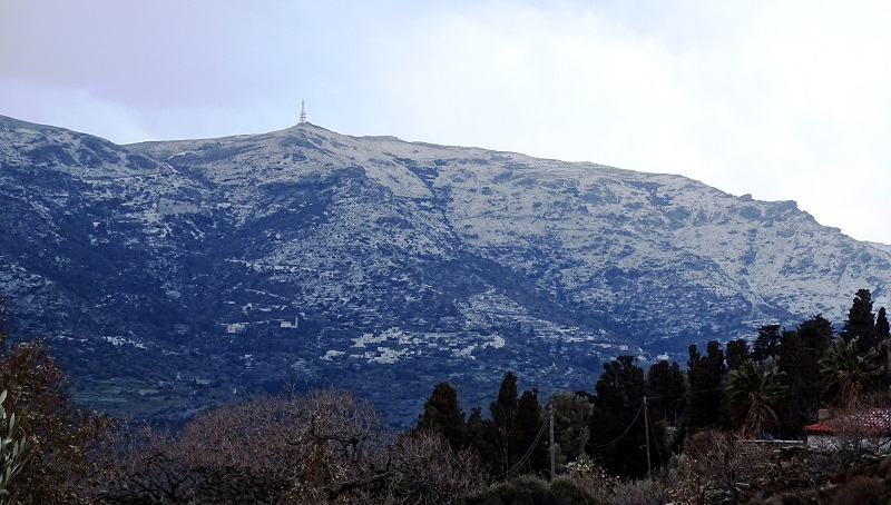 Μικρότερης έντασης και έκτασης ο χιονιάς "Φίλιππος" από τον προηγούμενο χιονιά "Ελπίδα". Όμως στα ορεινά της Άνδρου άπλωσε πάλι το χιόνι. Χιόνι = νερό. Και από νερό έχουμε ανάγκη. Άρα καλοδεχούμενο το χιόνι με το νερό του και την χαρά που δίνει το πέρασμα του από την Άνδρο. Στη φωτογραφία το πλέον χιονισμένο βουνό της Άνδρου, το Πέταλο, και από πάνω του η ψηλότερη κορυφή της Άνδρου, η Κουβάρα. Χιονισμένα και τα δυό...