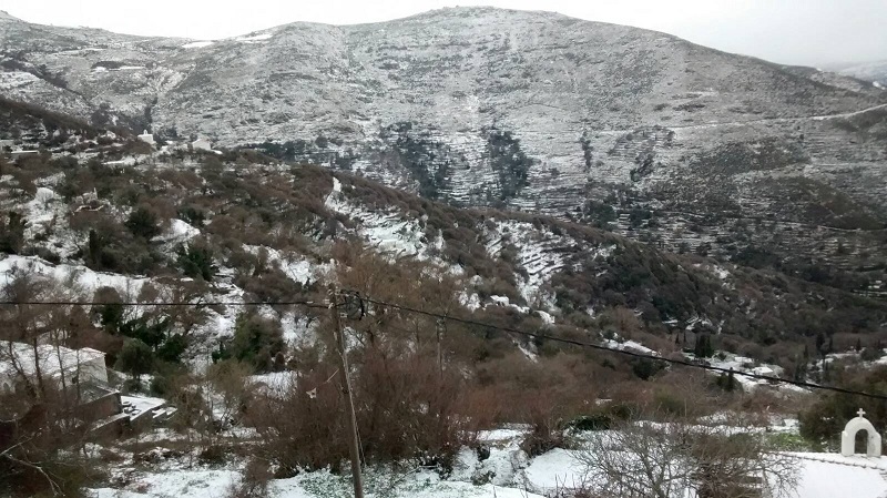 Το μεγαλύτερο μέρος του χιονιού πήγε στη δυτική πλευρά των Γερακώνων. Οι φωτογραφίες είναι του Εν Άνδρω.