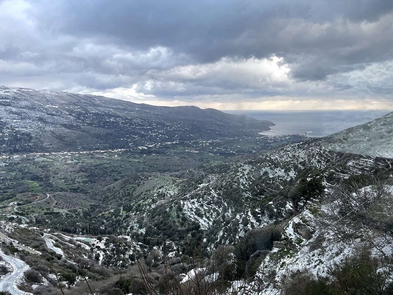 Και από το παγωμένο Γαύριο. Με φόντο την χιονισμένη Κουβάρα...