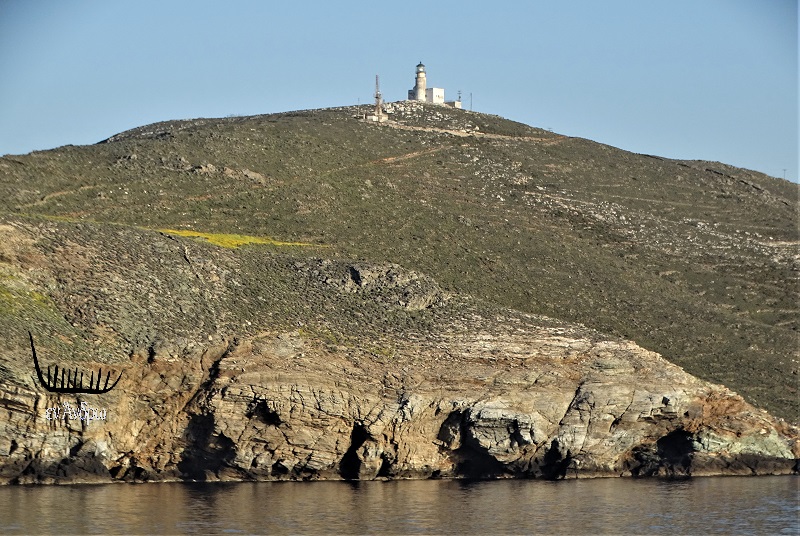 Μπορεί να μην μπορέσαμε να φωτογραφίσουμε τα Άχλα, αλλά μπορέσαμε να αποτυπώσουμε σε δύο εξαιρετικές φωτογραφίες τον φάρο της Γριάς, πάνω από τα άγρια κι επιβλητικά βράχια της ανατολικής ακτής της Άνδρου...