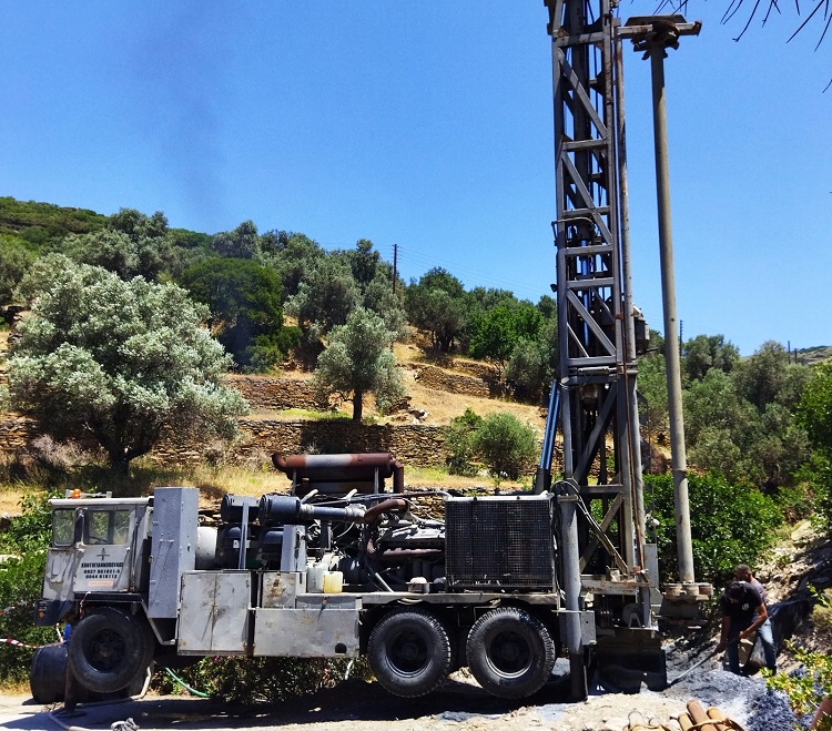 Της γεώτρησης επιμελήθηκε ο υδρολόγος Κυκλάδων Ηλίας Νόκας, ο οποίος πέρασε και έλεγξε το έργο και τα υδρολογικά δεδομένα. Η γεώτρηση στόχευσε σωστά και βρήκαν νερό με την πρώτη. Υπολογίσθηκε πως μπορεί να γίνεται άντληση περίπου 90 κυβικά νερό την ημέρα. Μια ποσότητα ικανή για να συμπληρώσει πλήρως την κατανάλωση του χωριού.