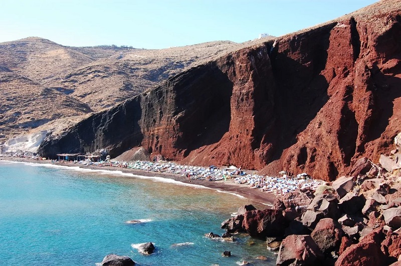 Πρόκειται για μια παραλία με ηφαιστειακή άμμο και τα κόκκινα βράχια κάνουν ακόμα πιο επιβλητικό το τοπίο με τους επισκέπτες του νησιού να θέλουν να τη δουν από κοντά. Η κόκκινη παραλία βρίσκεται κοντά στον αρχαιολογικό χώρο του Ακρωτηρίου και σε μερικά βήματα θα αντικρίσετε από ψηλά τη φανταστική αυτή παραλία που έχει γίνει από τα δημοφιλέστερα αξιοθέατα στη Σαντορίνη. Τα σκούρα μπλε νερά της παραλίας κάνουν αντίθεση με τα κόκκινα βράχια που στέκονται επιβλητικά από πάνω χαρίζοντας ένα μοναδικό θέαμα. Να αναφέρουμε πως τα νερά βαθαίνουν σε κοντινή απόσταση από την ακτή.