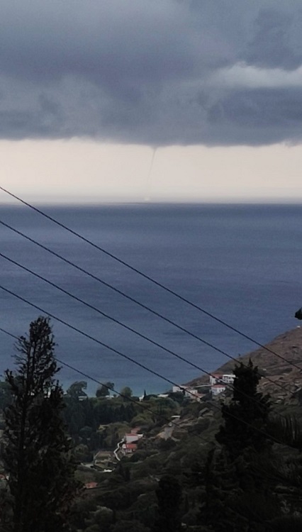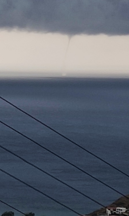 Επειδή είδα ότι το 2015 κάποιος ανέβασε μια φωτογραφία με υδροστρόβιλο έξω από τα Απροβατου σας στέλνω λοιπόν και εγώ με την σειρά μου τον χθεσινό έξω από τα Γιάλια που τέλος χτύπησε την Άνδρο. Είναι μικρής ισχύος έναντι αυτών που κατά καιρούς ακούμε τους καταστροφικούς στην Αμερική και στην Ασία. Όμως δεν άργησε να κάνει την εμφάνιση του και ιδιαίτερα στην Χώρα και στα Αποίκια.