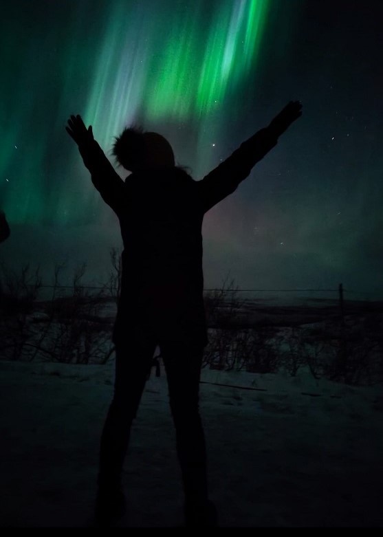 Η έκπληξη και η χαρά των 12 ταξιδιωτών που έφτασαν μέχρι εκεί ήταν μεγάλη. Το ουράνιο φαινόμενο που προέρχεται από τις ακτίνες του ήλιου και το μαγνητικό πεδίο της γης ήταν μπροστά και πάνω τους. Οι δύο κοπέλες και μερικοί ακόμα που έκαναν το ταξίδι μέχρι τον αρκτικό κύκλο μόνο και μόνο για να δουν το Βόρειο Σέλας ένοιωσαν μια ανάταση. Τόση που να σηκώσουν τα χέρια στον ουρανό σαν σε προσεχή, σαν σε ευχαριστία. Πόσες φορές θα μπορούσαν να δουν ζωντανά το Βόρειο Σέλας στον αρκτικό κύκλο; Πως να μην νοιώσουν μοναδικά. Η περιγραφή τους στο τηλέφωνο, μαζί με τις εντυπωσιακές φωτογραφίες που έστειλαν, αποτυπώνει την υπερ-ουράνια ομορφιά, αλλά και την μοναδική έκπληξη, που δημιουργεί το Βόρειο Σέλας.