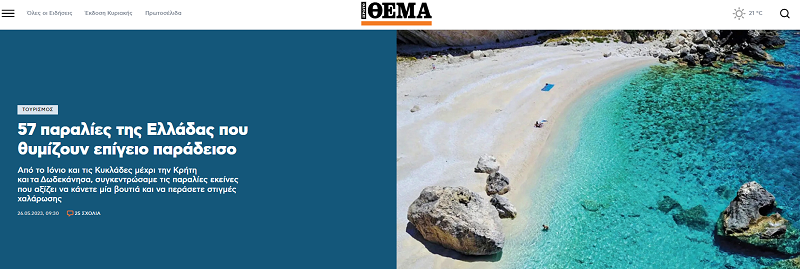 Καθώς ξεκινά το καλοκαίρι και έχει αρχίσει ο τουρισμός το Πρώτο Θέμα παρουσιάζει 57 ελληνικές παραλίες που θυμίζουν επίγειο παράδεισο. Από το Ιόνιο και τις Κυκλάδες μέχρι την Κρήτη και τα Δωδεκάνησα οι συντάκτες του συγκέντρωσαν 57 παραλίες σε όλη την χώρα. Από αυτές 25 είναι στις Κυκλάδες. Και από αυτές επιλέχθηκε και μια της Άνδρου: ο Ζόρκος!