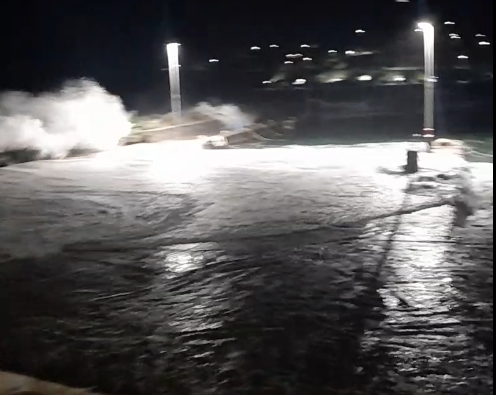 Οι νοτιάδες χτύπησαν και την Άνδρο. Η θάλασσα βγήκε έξω στο Γαύριο και στο Μπατσί, όπως φαίνεται και από την παραπάνω φωτογραφία. Στις Κυκλάδες οι άνεμοι έφτασαν μέχρι 100 και 118 χιλιόμετρα την ώρα. Δηλαδή από 10 μέχρι 11 μποφόρ.