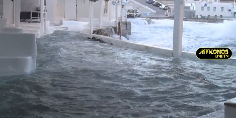 Σε... πισίνα μετατράπηκε η Μικρή Βενετία στη Μύκονο εξαιτίας της κακοκαιρίας Bettina. Συγκεκριμένα, οι θυελλώδεις άνεμοι που έπνεαν στην περιοχή «φούσκωσαν» τη θάλασσα, με αποτέλεσμα η γραφική περιοχή του νησιού των ανέμων να γεμίσει με νερά.
