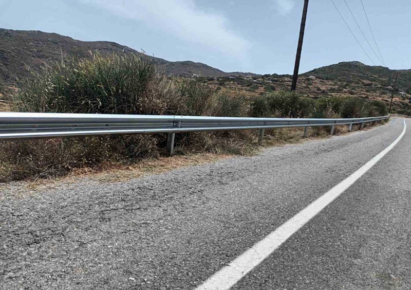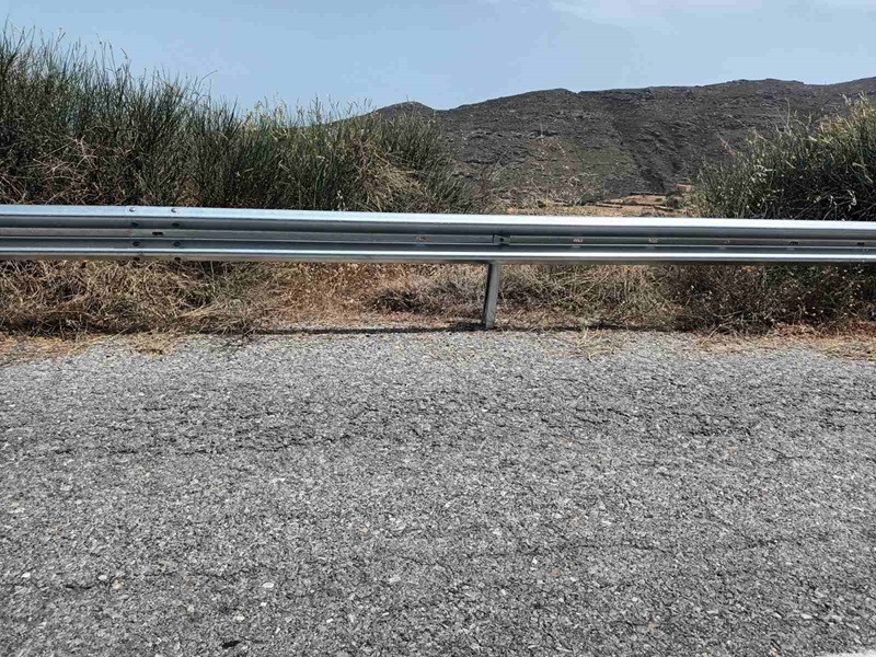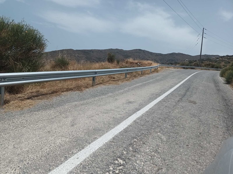 "Έτσι και έως έτυχε" , δηλαδή στην τύχη, τοποθετούνται και πακτώνονται οι νέες μπάρες. Που μπορεί να σώσουν σίγουρα ζωές και είναι ευπρόσδεκτες, αλλά από την άλλη τοποθετούνται στην τύχη, χωρίς σχέδιο, όπου βολεύεται ο εργολάβος, ανάλογα που του επιτρέπουν οι συστάδες των ακαθάριστων ασπαρτιών και των δουραφών, μειώνοντας ή καταργώντας το έρεισμα και πρανές του οδοστρώματος και κατ' επέκταση το πολύτιμο για την ασφάλεια εύρος του, απαγορεύοντας στο μέλλον την διαπλάτυνσή του. Στην φωτογραφία μας, τοποθετούνται αχρείαστα αφού υπάρχει ο αποτρεπτικός τοίχος και επίσης καταργείται ένα παλιό μονοπάτι για πεζούς και ζώα που εξυπηρετούσε και συντόμευε τη διαδρομή Χώρας -Στραπουργιές-Αποικια -Βουρκωτή για όσους ήθελαν να αποφύγουν το επίπονο καλντερίμι της Αγίας Ελένης.