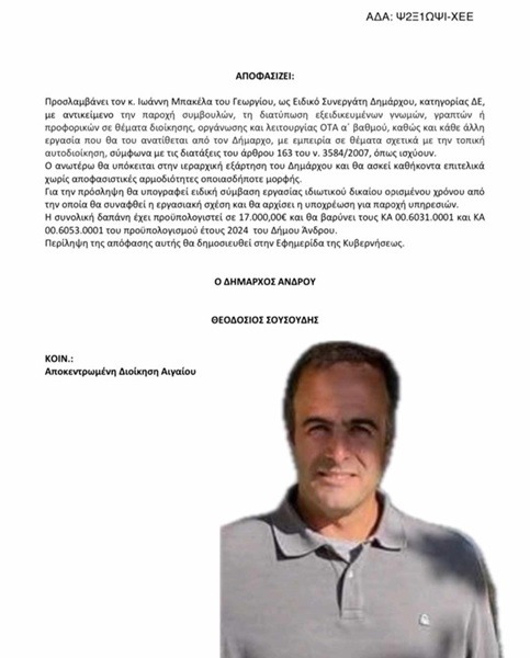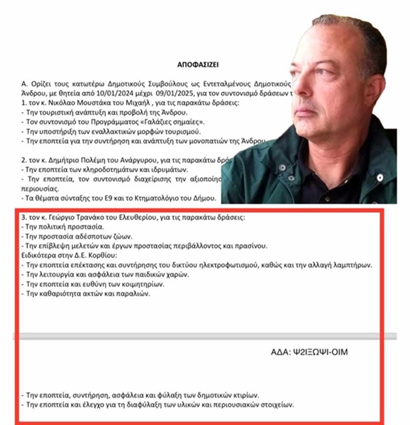 Να σημειωθεί ότι αρχικά ο Δήμαρχος μεταβίβασε την αρμοδιότητα στον Γ Τρανάκο ως εντεταλμένο Δημοτικό Σύμβουλο με απόφαση η οποία ελέγχεται ως προς την νομιμότητα της αφού αρμοδιότητες μεταβιβάζονται μόνο προς τους Αντιδημάρχους. Εν συνεχεία έδωσε ανάλογες αρμοδιότητες στον Γ Μπακέλα ως άμισθο ειδικό συνεργάτη. Στην συνέχεια όρισε τον Γ Μπακέλα ως έμμισθο συνεργάτη με άλλες αρμοδιότητες-χωρίς να αναφέρει την πολιτική προστασία-ενώ την ίδια στιγμή συνέχισε να τον παρουσιάζει ως υπεύθυνο πολιτικής προστασίας...