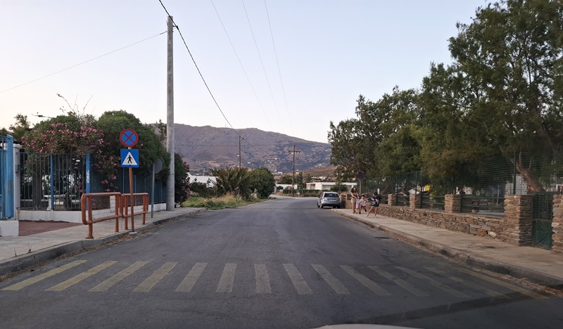 Ασφαλτόστρωση και πεζοδρόμιο εντός του οικισμού του Γαυρίου. Η διασταύρωση των τριών δρόμων στα σχολεία του Γαυρίου..