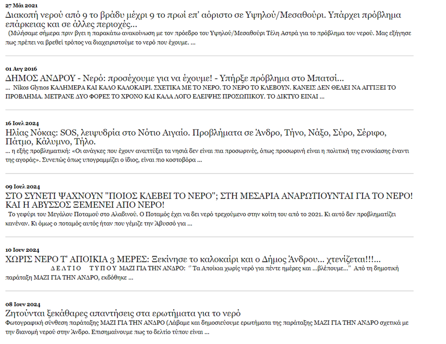 Αυτές τις μέρες με το νερό γίνεται μέγας θόρυβος. Τέλος Ιουλίου κι ήταν αναμενόμενο. Το Εν Άνδρω έχει ασχοληθεί πάνω από έναν χρόνο με το θέμα με πολλά γενικά και ειδικά άρθρα και ρεπορτάζ.