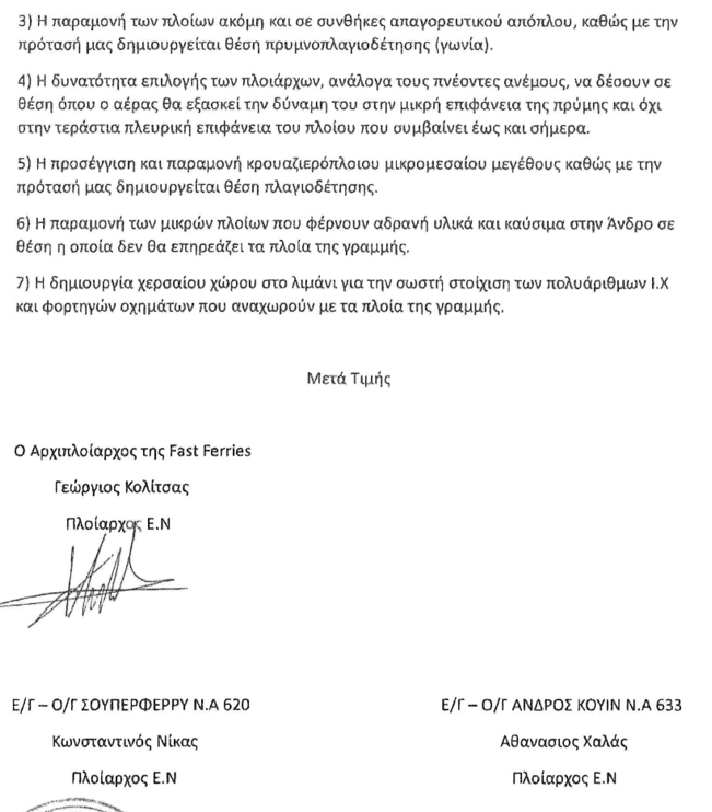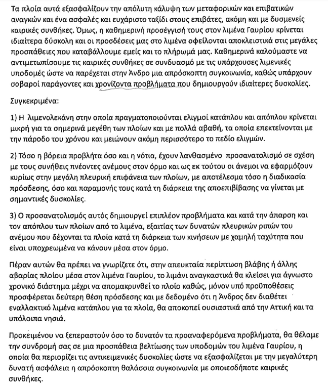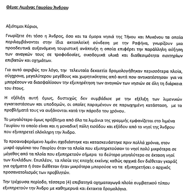 ΑΚΟΛΟΥΘΕΙ Η ΕΠΙΣΤΟΛΗ ΠΛΟΙΑΡΧΩΝ ΠΡΟΣ ΤΟ ΥΠΕΝ ΚΑΙ ΟΛΟΥΣ ΤΟΥΣ ΑΡΜΟΔΙΟΥΣ ΚΑΙ ΤΩΝ ΔΥΟ ΕΤΑΙΡΕΙΩΝ ΤΗΣ ΓΡΑΜΜΗΣ ΑΝΔΡΟΥ-ΤΗΝΟΥ-ΜΥΚΟΝΟΥ