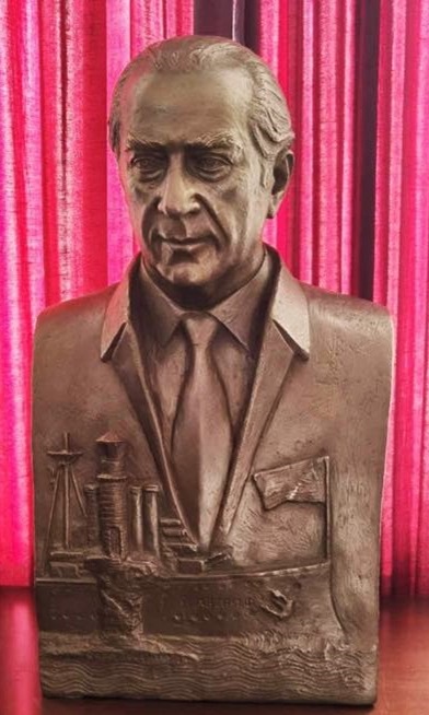 Η μπρούτζινη προτομή του Αλέκου Γουλανδρή με το θωρηκτό Αβέρωφ, που θα αποκαλυφθεί στην Χώρα αν κάποτε ευκαιρήσει ή το θυμηθεί ο δήμαρχος Σουσούδης.