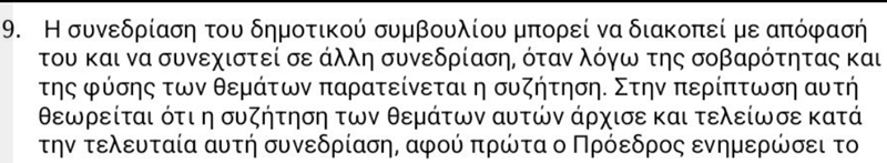 Μόνο που υπάρχει αυτό το μαρτυριάκο άρθρο 6 παρ.9 που έχει άλλη άποψη! Λέει ότι μόνο το ΔΣ με απόφαση του μπορεί να διακόψει την συνεδρίαση, και μόνο όταν κάποιο θέμα τραβάει σε μάκρος κτλ κτλ και αυτή ( η συνεδρίαση) να συνεχιστεί άλλη μέρα! Αλλά ποιος το λογαριάζει κι αυτό!