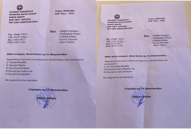 (Λάβαμε και δημοσιεύουμε από τον πρόεδρο της κοινότητας Μακραταντάλου σημείωμα και φωτογραφίες - ΕΝ ΑΝΔΡΩ)