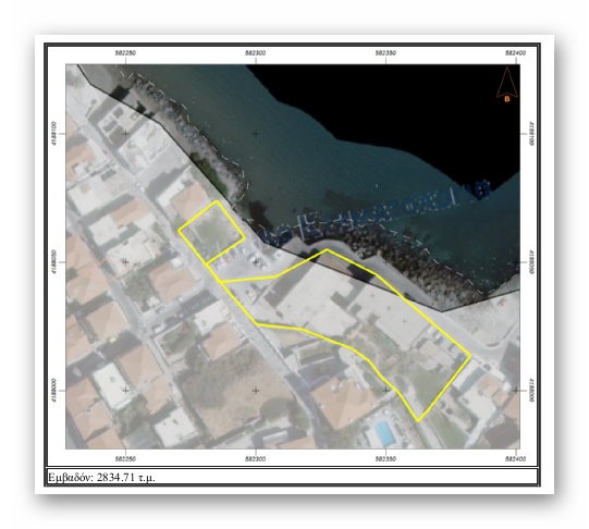 Το σύνολο της εδαφικής ιδιοκτησίας του “ΞΕΝΙΑ” που περιήλθε στο Ελληνικό Δημόσιο κατόπιν δωρεάς της οικογένειας Εμπειρίκου (απόσπασμα από ψηφιακό χάρτη του Εθνικού ΚΤΗΜΑΤΟΛΟΓΙΟΥ)