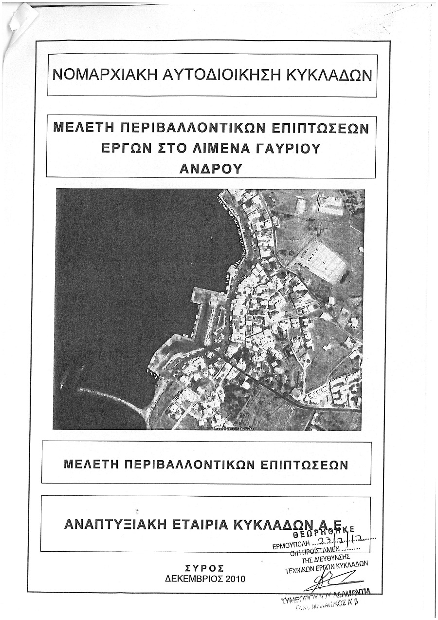 Σας πληροφορώ - καθαρά για την πληροτητα της Ενημέρωσης - οτι υπάρχουν επαρκείς προηγούμενες Μελέτες για το σύνολο των Έργων Εκσυγχρονισμού - Ανάπλασης της παράκτιας ζώνης του Λιμένα Γαυρίου - Επανασχεδιασμός Κυκλοφοριακής ρύθμισης προς εξυπηρέτηση αυτού . Τις έχω εκπονήσει προσωπικά απο το 1992-1993, κατόπιν εντολής του τοτε Επαρχου κου Ι. Πέρρου οταν υπηρετούσα στην ΤΥΔΚ Δήμου+ κοινοτήτων Ανδρου, σε συνεργαασία με τον τότε Κοινοτάρχη κο Αποστ. Νταή. Είχα επίσης σε αυτή συμπεριλάβει παλαιότερη Μελέτη που ειχε εκπονηθεί απο Τεχνική Εταιρεία - με ανάθεση απο τον Γ. Ανωμερίτη - για Νέα Μαρίνα στην συνέχεια του Λιμένα προς τα δυτικά και την παρακείμενη παραλία (πριν την έξοδο του μικρού υδατορέμματος). Πρόσφατα όμως την έχω εμπλουτίσει με το Εργο Πρόσθετης Υποδομής για Υδροδρόμιο - έξω απο την λιθοκατασκευασμένη προβλήτα , ώστε να μην επιβαρύνει και παρεμποδίσει στο ελάχιστο την προσέγγιση και απόπλου των ακτοπλοϊκών πλοίων. Θα είμαι στην διάθεση του Επάρχου κου Δ. Λότσαρη και της Περιφερειας Νοτίου Αιγαίου για να ενσωματωθούν τα όποια χρήσιμα Τεχνικά στοιχεία και να εξοικονομηθεί χρόνος (και χρήμα).