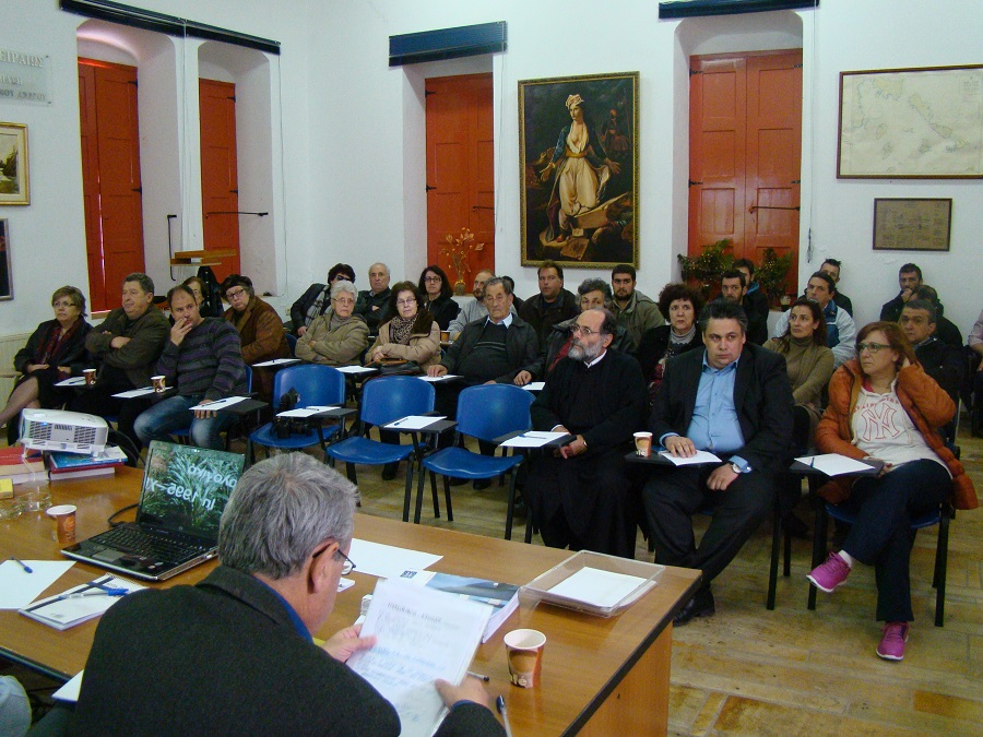 Από την συνάντηση για την γεωργία στην Άνδρο του Συλλόγου Μεσαριάς στο παλιό παρθεναγωγείο της περιοχής. Από τους πολιτικά αρμόδιους παρενέβη μόνο ο έπαρχος Άνδρου.