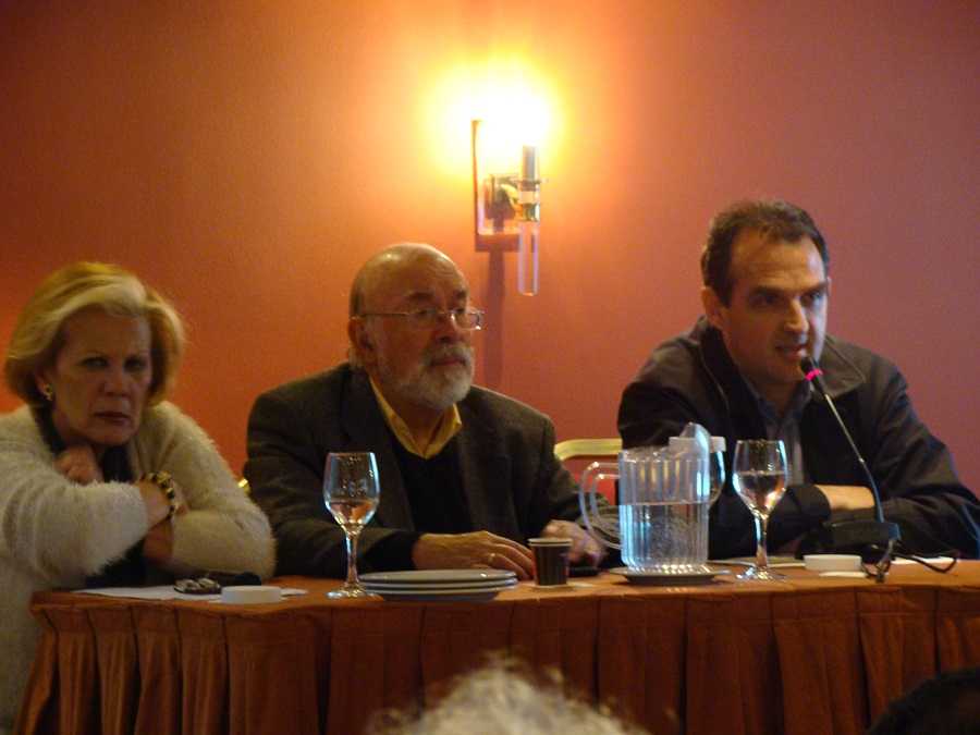 Το προεδρείο της συνάντησης και ο μελετητής που εκπροσωοεί τους κατοίκους κατά του ΧΥΤΥ της Πλούσκας