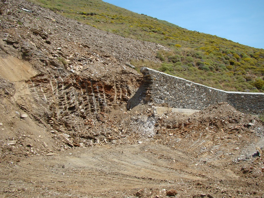 Η πλαγιά και η πέτρινη μάντρα πριν την κατολίσθηση στο πάνω μέρος του βιολογικού