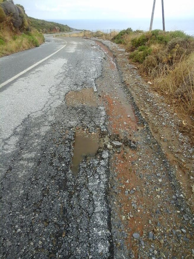 Όταν δεν υπάρχει αυλάκι αριστερά να μαζέψει τα νερά τότε χάνουμε τον δρόμο... στα δεξιά!!! Χωρίς πρόληψη κι έφυγε... ο μισός δρόμος (φωτο: Η.Μ)