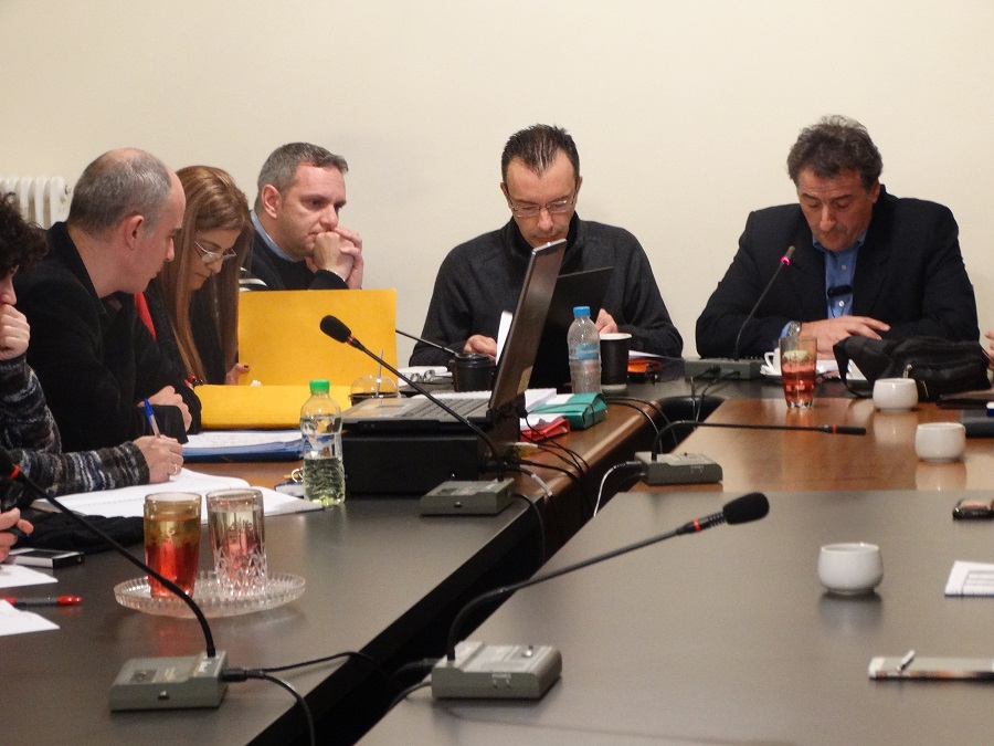 Οι 11 της πλειοψηφίας με τους δύο λογιστές στην μια άκρη του μισοάδειου τραπεζιού. Οι δύο της αντιπολίτευσης δεν διακρίνονται στην άλλη άκρη. Ενδιαμέσως το μικροπαραταξιακό χάος...