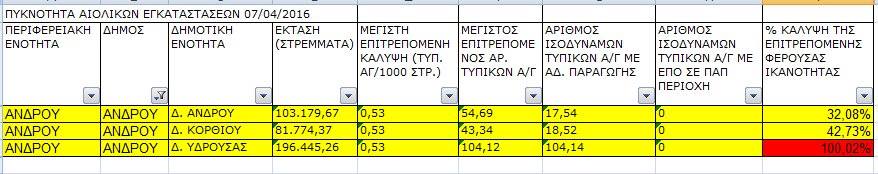 Επομένως, η Περιφέρεια προχωρά στα επόμενα βήματα και για την Άνδρο ισχύει η ΑΡΧΙΚΗ ΠΥΚΝΟΤΗΤΑ ΑΙΟΛΙΚΩΝ, όπως αυτή έχει καταγραφεί στην ιστοσελίδα της ΡΑΕ.
