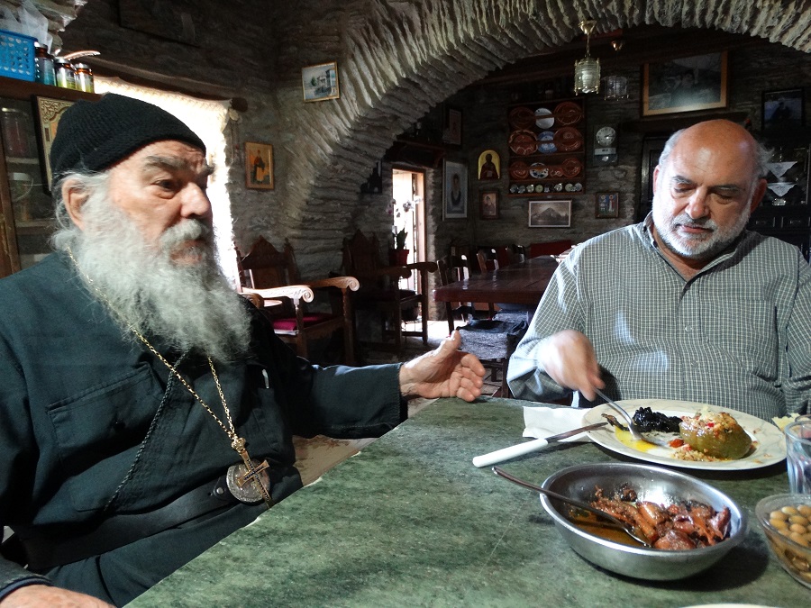 Οι εκ Μήλου καταγώμενοι στην Πανάχραντο τα λένε: ο ηγούμενος Ευδόκιμος και ο βουλευτής Νίκος Συρμαλένιος...