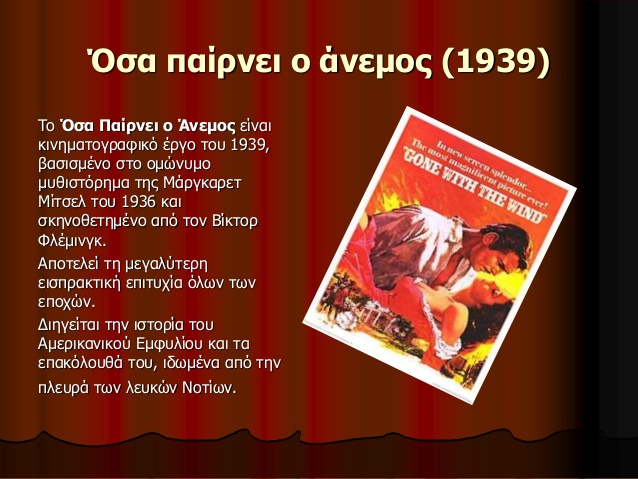 Ολόκληρο τον Ιούλιο σε όλη την Άνδρο προβαλλόταν καθημερινά η ταινία: Όσα Παίρνει ο Άνεμος!!! Ήταν μια νέα εκδοχή της κλασικής ταινίας του 1939. Εκεί επί 4 ώρες πρωταγωνιστούσαν δραματικά οι Κλαρκ Γκέιμπλ και Βίβιαν Λη. Στη νέα κόπια επί 40 μέρες πρωταγωνιστούν ατάραχοι Θ. Σουσούδης και ο Χ. Βουραζέρης! Στην παλαιά εκδοχή υπήρχαν χιλιάδες κομπάρσοι που έκαναν τους στρατιώτες σε μάχες σώμα με σώμα. Στη νέα κόπια κομπάρσοι ήταν εκατοντάδες ταραγμένοι επαγγελματίες και χιλιάδες κάτοικοι και παραθεριστές που έδιναν καθημερινές μάχες, σώμα με σώμα, με τα σκουπίδια και τα ανακύκλωσιμα σε ολους τους δρόμους. Στην παλιά κόπια σκηνικό ήταν η θύελλα του αμερικάνικου εμφυλίου. Στη νέα κόπια η θύελλα από ένα ασταμάτητο μελτέμι. Ένας τρελός βοριάς. Για τον λόγο αυτό μουσική υπόκρουση όλο το καλοκαίρι ήταν το κλασικό τραγούδι «του μικρού βοριά», το οποίο τραγούδησαν προς τιμή μας όλοι ανεξαιρέτως όσοι πέρασαν από το Φεστιβάλ Άνδρου...