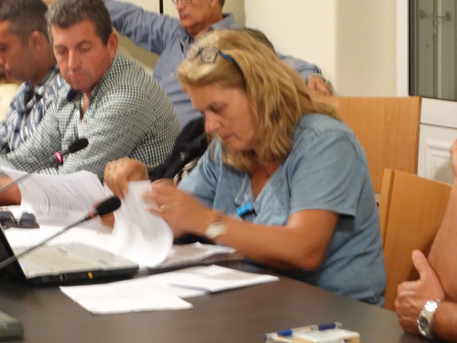 Η κ. Πολίτου ψαχνει τους κωδικούς της διαφωνίας στην "ομόφωνη εισήγηση". Προσέξτε την "προσοχή" με την οποία κοιτά ο απροετοίμαστος κ. Βιδάλης.... (φωτ. Εν Άνδρω).