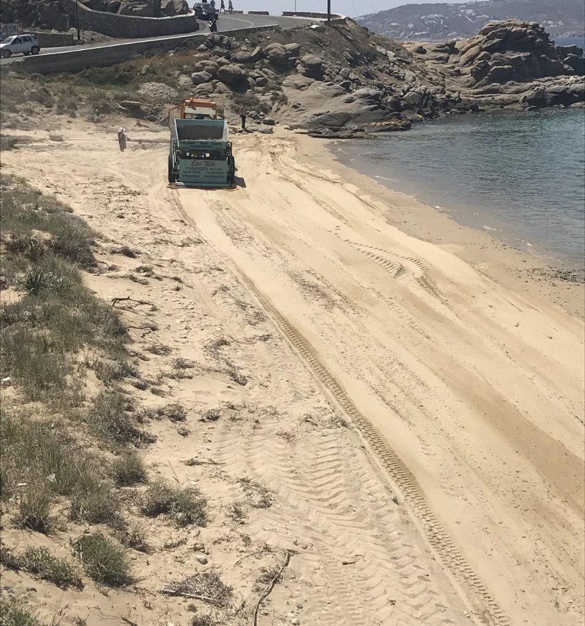 Αυτή την εποχή, όλα τα νησιά ετοιμάζονται για την καλοκαιρινή περίοδο. Στην Μύκονο (νούμερο ένα ελληνικό νησί, με πάμπλουτο Δήμο) κάτι θηριώδη μηχανήματα οργώνουν όλες τις παραλίες καθαρίζοντας την άμμο από σκουπίδια, ξύλα, απορρίμματα, πέτρες και ότι έβγαλε η θάλασσα τους χειμωνιάτικους μήνες. Επί κεφαλής ο δήμαρχος. Του Αγίου Πνεύματος όλα θα είναι πεντακάθαρα.