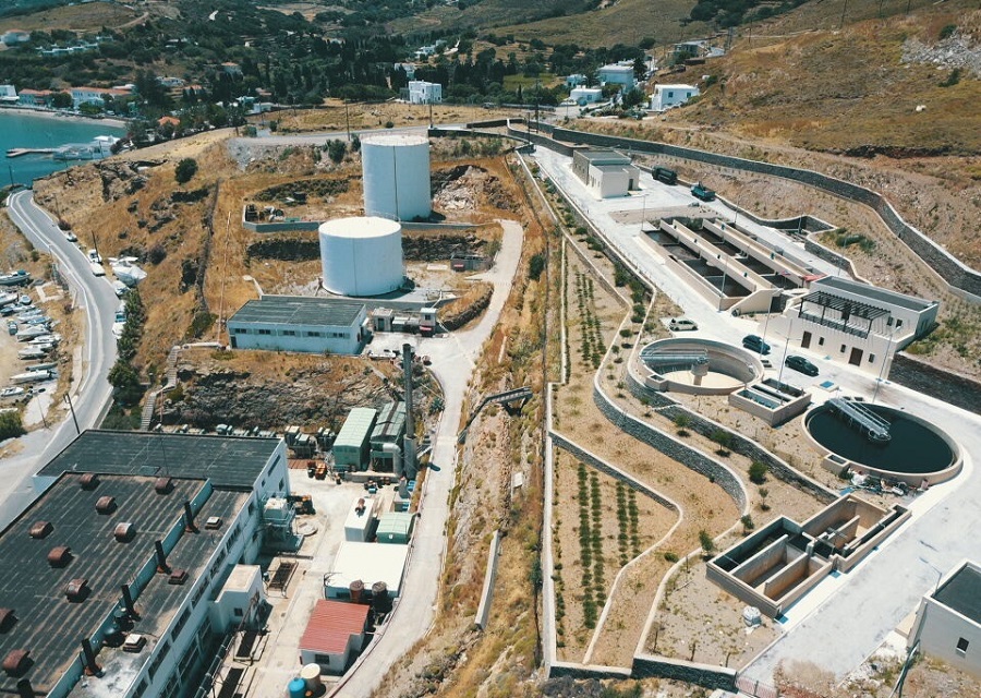 Ακόμα μια άποψη των δεξαμενών του βιολογικού και του λιμανιού της Χώρας.