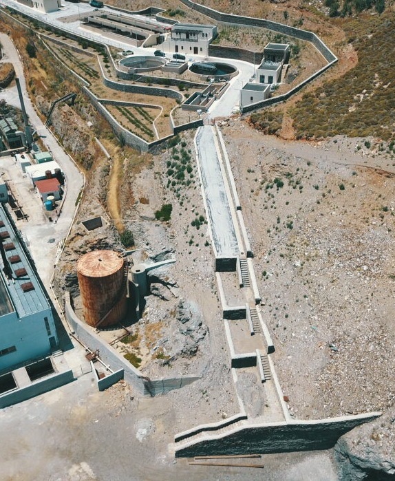 Μια ακόμα πανοραμική φωτογραφία με drone. Όλα τα πρανή μέσα και έξω είναι φυτευμένα και ποτίζονται με το νερό του βιολογικού. Σε μερικά χρόνια θα έχει αλλάξει το τοπίο πολύ.