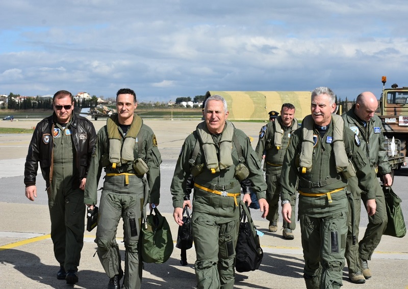 Ο αρχηγός ΓΕΕΘΑ ναύαρχος Ευάσγγελος Αποστολάκης και ο αρχηγός αεροπορίας (ΓΕΑ) αντιπτέραρχος Χρήστος Χριστοδούλοτυ κατευθύνονται προς τα αεροσκάφη.