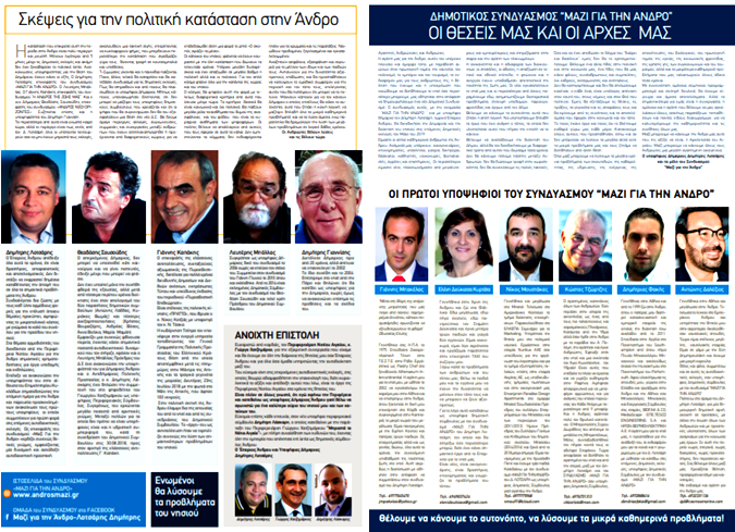 ΜΑΖΙ ΓΙΑ ΤΗΝ ΑΝΔΡΟ: οι πρώτες 13 υποψηφιότητες & το πρώτο προεκλογικό έντυπο