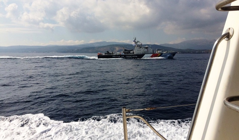 Σκάφος και πλήρωμα δίνουν τον καλύτερό τους εαυτό περιπολώντας μέρα - νύχτα στη θαλάσσια συνοριογραμμή μεταξύ Χίου και Τσεσμέ δοκιμάζοντας τις δυνάμεις στα όριά τους από τις συνεχείς αποστολές. Όπως φαίνεται η παρουσία της Frontex στην συγκεκριμένη περιοχή (και του πλωτού της Άνδρου) συνέβαλε στο να μην υπάρξουν μετανασταυτικές ροές προς το άλλο μεγάλο νησί των εφοπλιστών του Αιγαίου. Στην φωτογραφία το ΠΛΣ-115 πλέει παράλληλα ανοικτά τη Χίου με πλωτό της ρουμάνικης ακτοφυλακής.