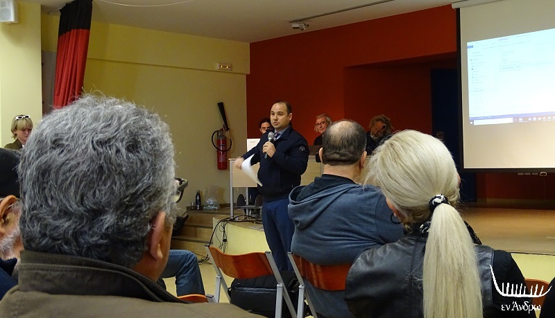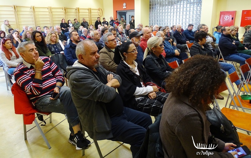 Αρχικά τον λόγο πήρε ο δήμαρχος Άνδρου Δ. Λοτσάρης που τόνισε πως είναι αναγκαία η ενότητα των κατοίκων ώστε να αποφευχθεί η εξάπλωση του αριθμού των ανεμογεννητριών. Ζήτησε να υπάρξει ένας χωροταξικός σχεδιασμός και να συμφωνήσουν και οι τοπικές κοινωνίες. Την ίδια πρόταση μετέφερε και από το περιφερειακό συμβούλιο και ο έπαρχος Άνδρου Δ. Λάσκαρης.